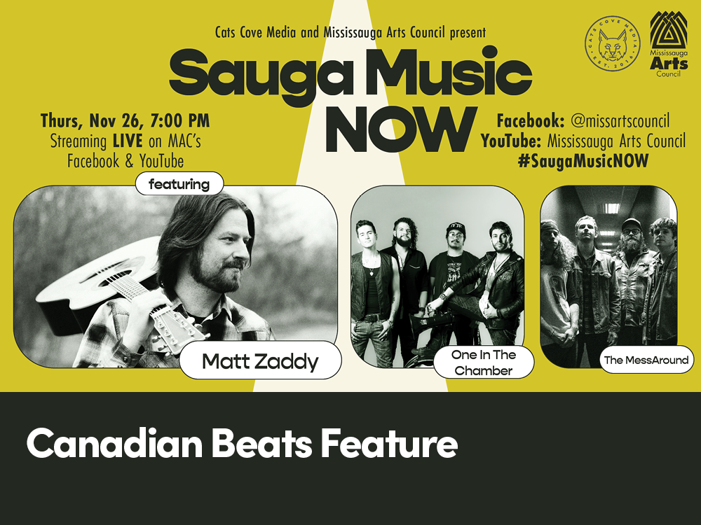 On Thursday, November 26th, 2020, the Mississauga Arts Council partnered with Cats Cove Media to present: Sauga Music NOW! A Livestream concert event featuring Matt Zaddy, One in the Chamber, and The MessAround.
