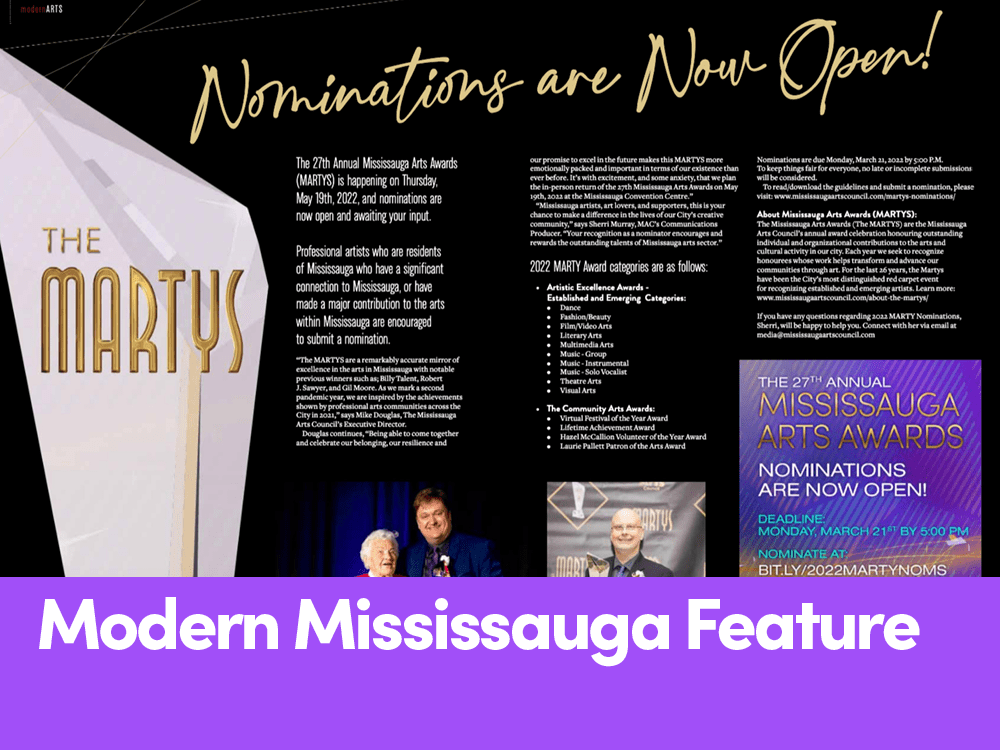 “The 27th Annual Mississauga Arts Awards (MARTYS) is happening on Thursday, May 19th, 2022, and nominations are now open and awaiting your input.