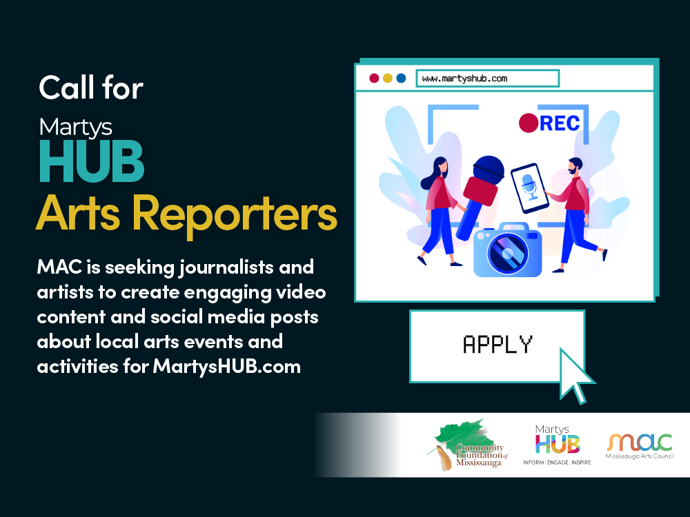 Mississauga Arts Council (MAC) has paid positions for Martys HUB Arts Reporters – journalists and artists who will create engaging video content and social media posts about local arts events and activities for Martys HUB.