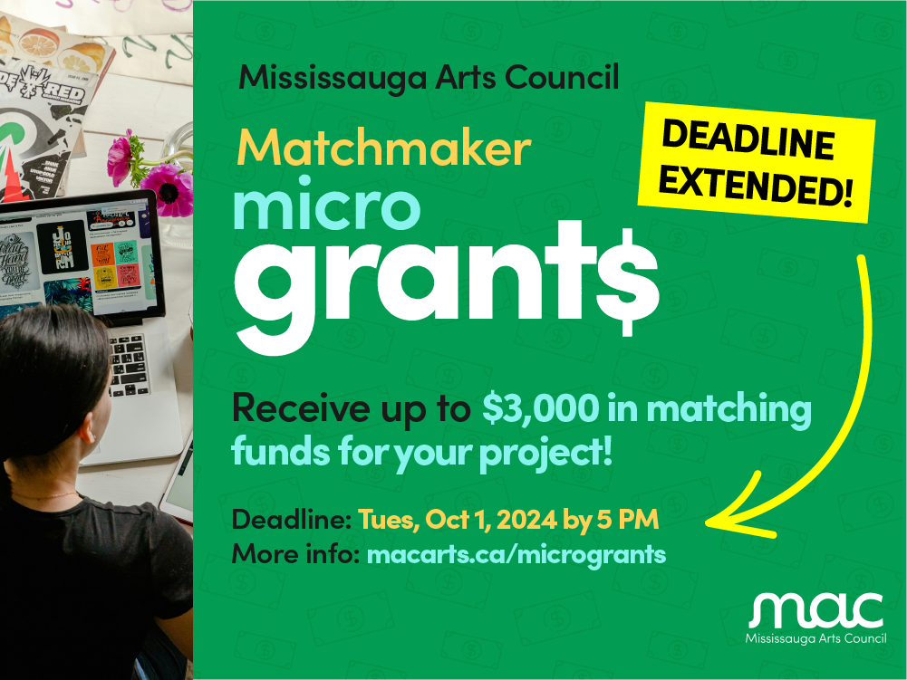 Mississauga Arts Council (MAC) is excited to announce our Fall 2024 MicroGrant program. These impactful grants provide timely financial assistance to artist-led initiatives by Mississauga creatives. MAC encourages professional Mississauga artists and unregistered arts groups/collectives across all disciplines to apply.