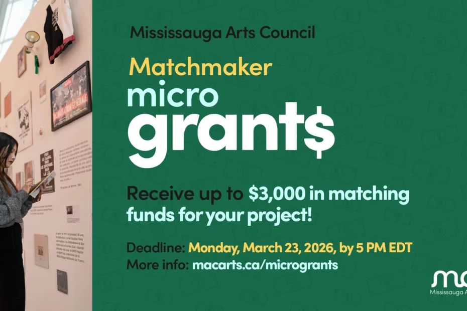 In the Winter 2026 MicroGrant funding round, MAC is offering Matchmaker MicroGrants to Individual Artists. Matchmaker MicroGrants provide 50% matching funds to artist-led projects from any artistic discipline up to a maximum of $3000. To be eligible for funding, projects must demonstrate a confirmed investment in the project at the time of application and must include a public-facing event or activity in Mississauga, engage audiences in Mississauga, and pay artist fees to Mississauga-based artists.