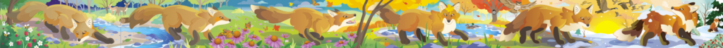 Sauga City’s main artistic focus for the Richard’s Memorial Park mural was to showcase the local wildlife and changing seasons, while highlighting the beautiful red fox, native to the area. Each panel shows how the red fox’s coat changes over the seasons in Ontario.