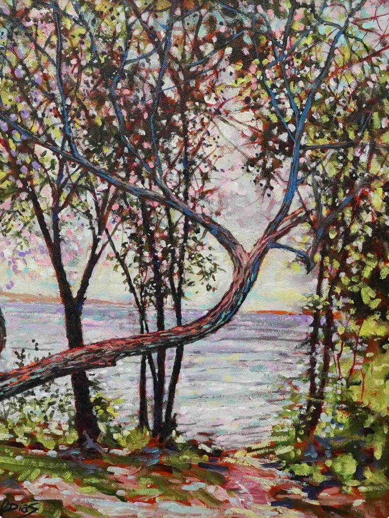 This colourful piece by local visual artist Leo Dias (Sauga Plein Air Group) was painted on location in Jack Darling Memorial Park. Bring this beautiful local work home today! – Acrylic on Canvas Board (24″x19.5″ framed)