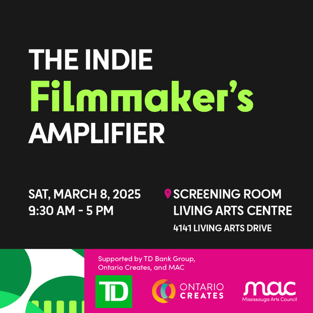 Sponsored by TD Bank Group, Ontario Creates, and presented by Mississauga Arts Council in partnership with producer, Cathleen MacDonald, The Indie Filmmaker’s Amplifier is a full day of in-person interactive workshops with veteran industry professionals, roundtable meetings with industry leaders, and a networking lunch to help filmmakers get their projects made. Participants will come away with strategies, knowledge, resources, and connections to help launch their projects into production.
